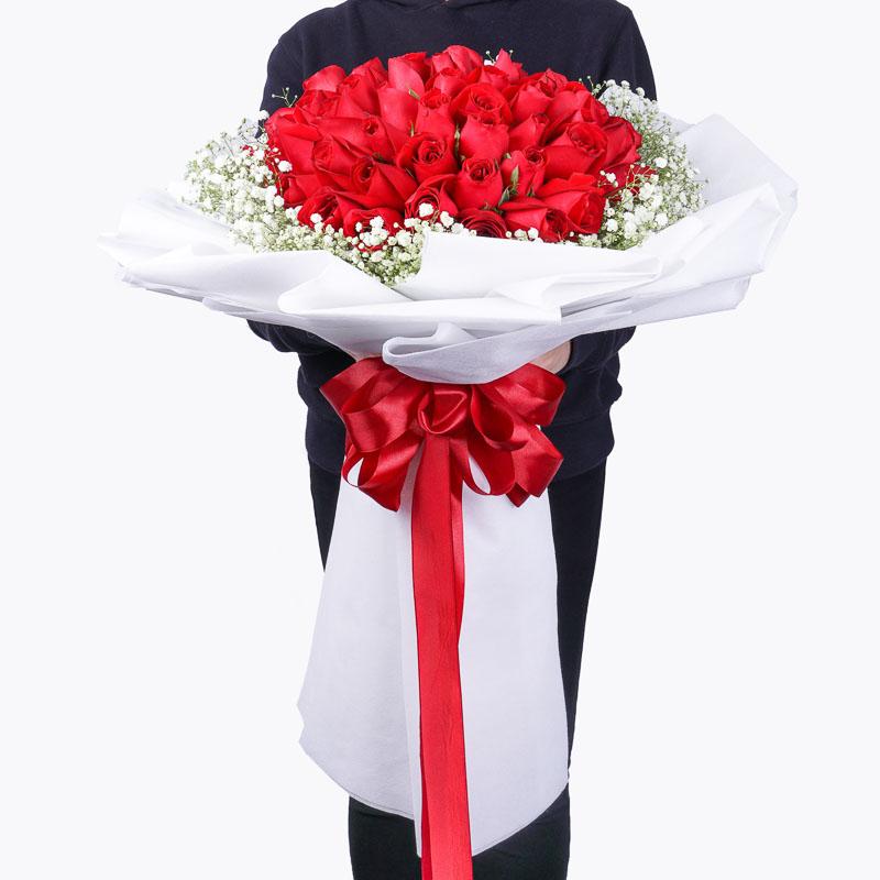 This majestic rose bouquet of 66 red roses is an all-time favorite here at Flower Chimp. No matter the occasion, this gorgeous arrangement never fails to put an impact on someone's day!