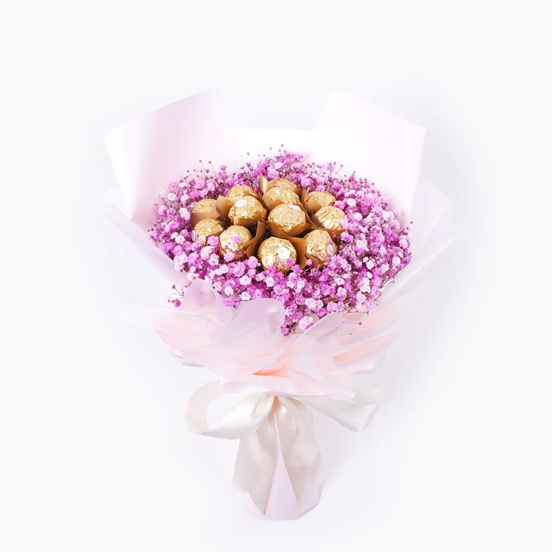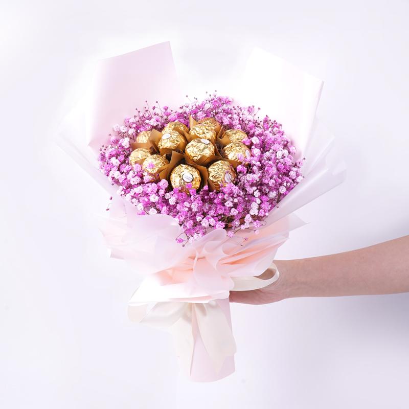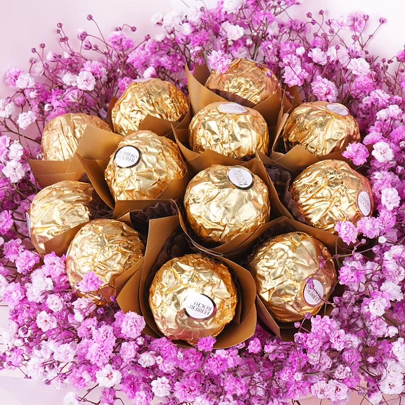 Ferrero Rocher (9 stalks), Pink Baby Breath