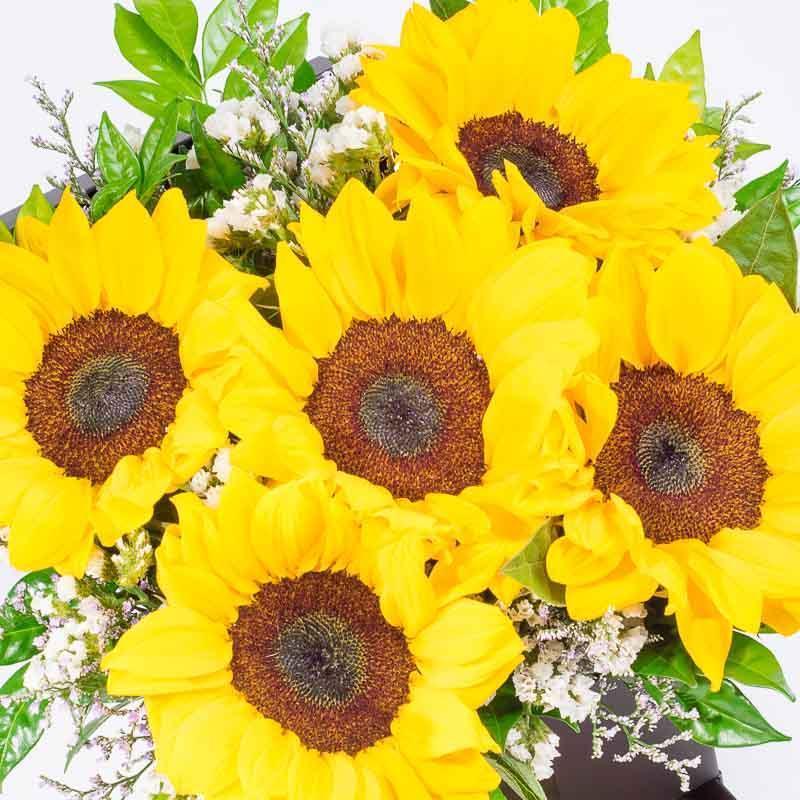 Sunflowers (5 Stalks), White Statice (3 Stalks), Purple Caspia