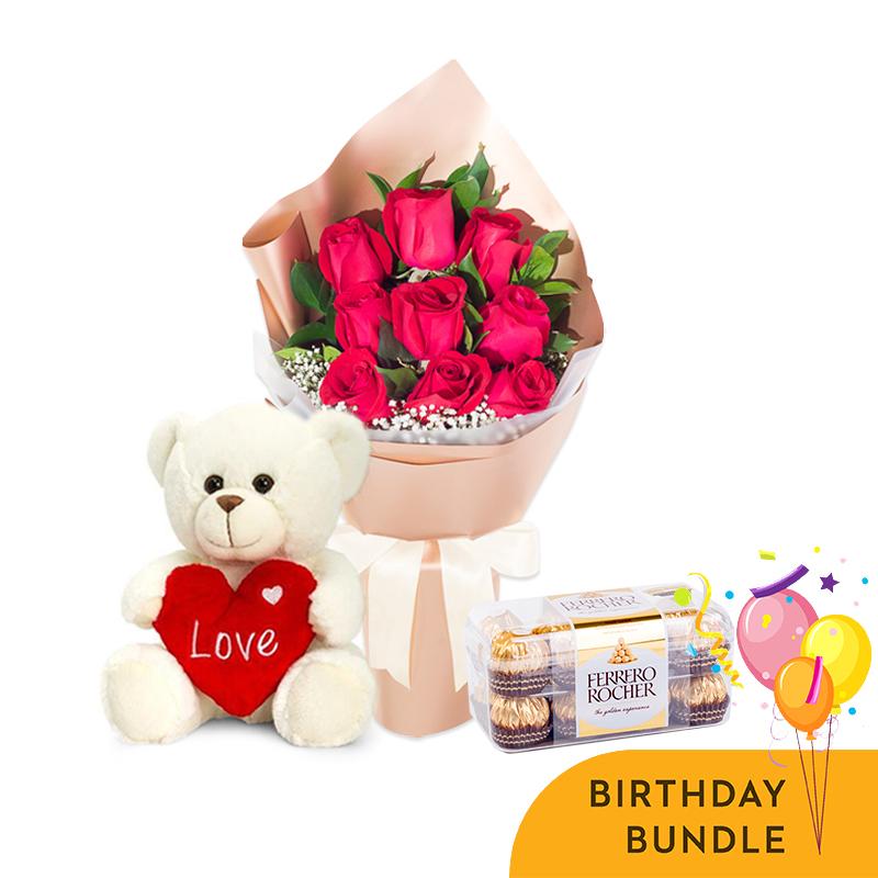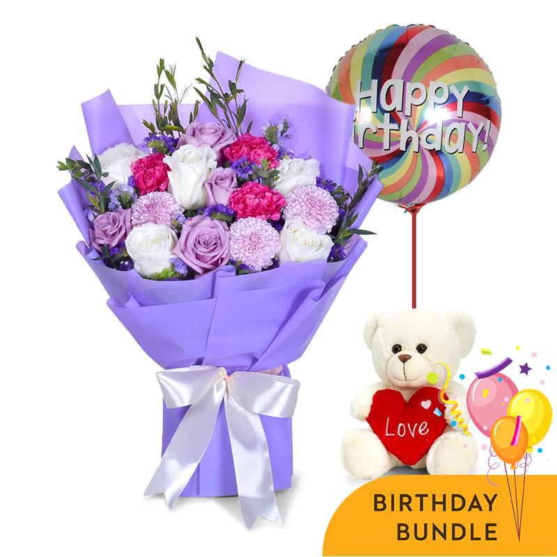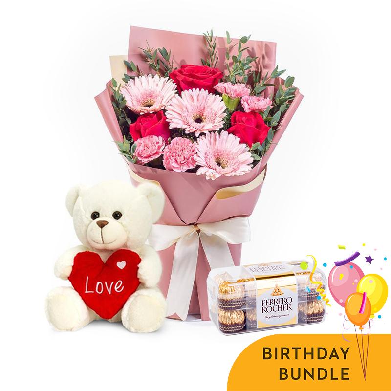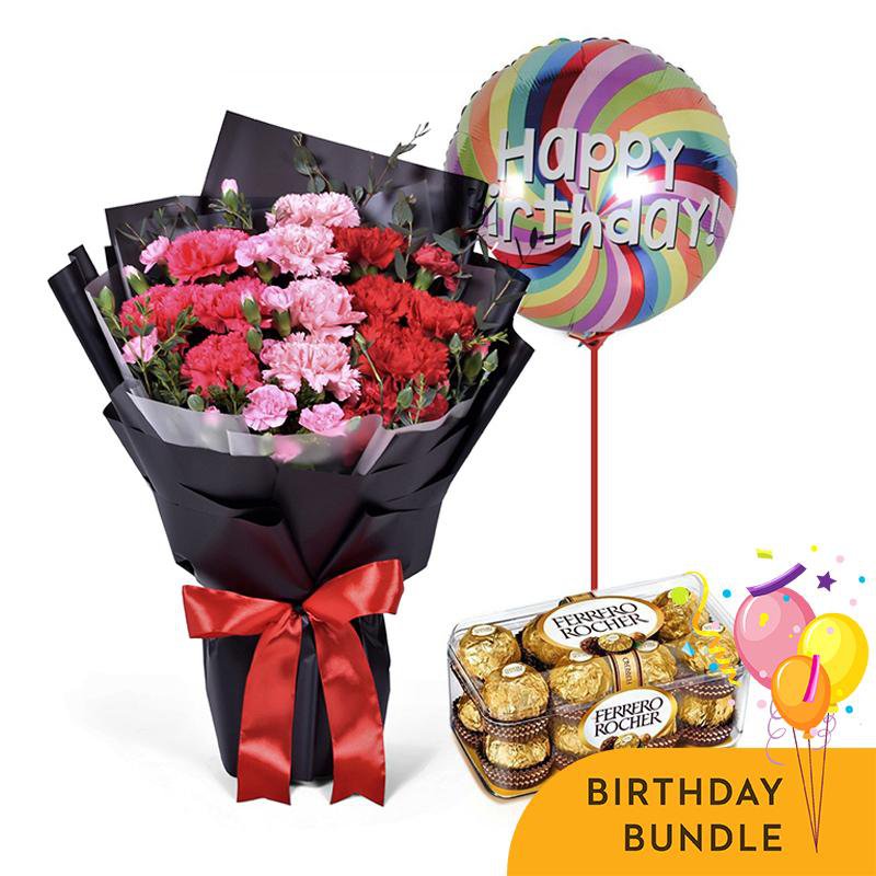 Get the party started, brighter than ever before with our Bloomy Days Birthday Bundle. The bundle even comes with decadent Ferrero Rocher and a bright birthday balloon! If you are looking to make a lovely statement, send this today!