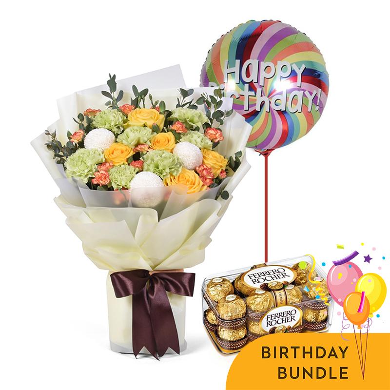 Get the party started, brighter than ever before with our Cheerleader You Birthday Bundle. The bundle even comes with decadent Ferrero Rocher and a bright birthday balloon! If you are looking to make a lovely statement, send this today!