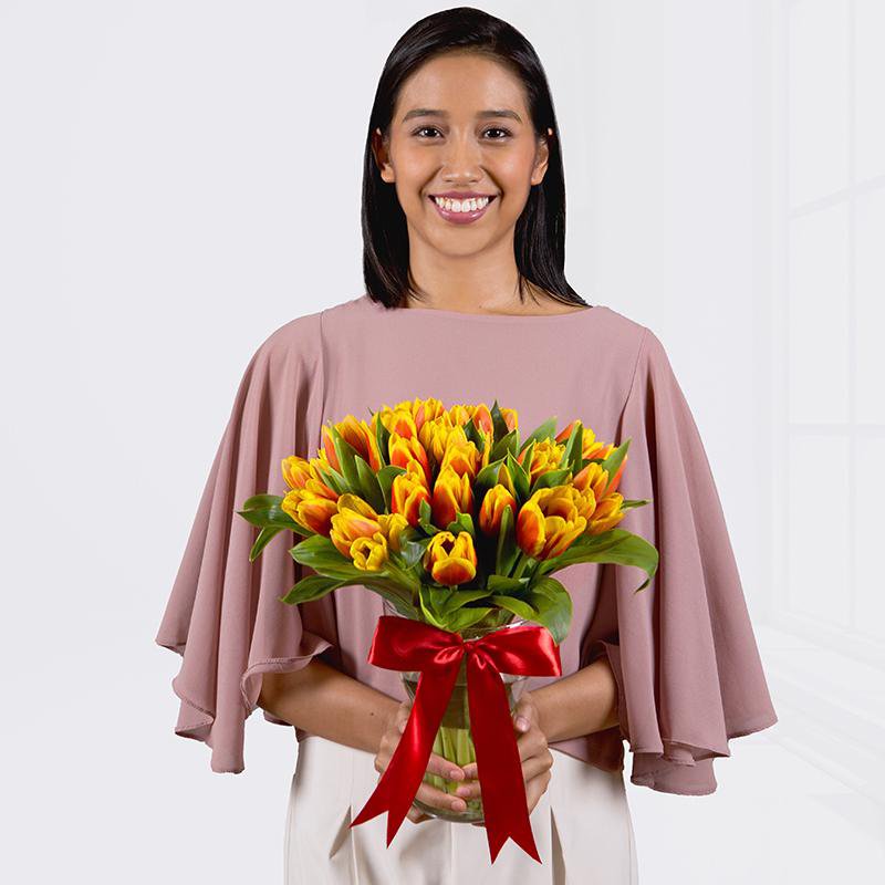 Surprise your loved ones with our beautifully arranged bouquet of imported Tulips from Holland. - A bouquet perfect to convey your true love and loyalty to your dearest one.
