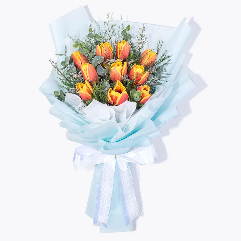 Surprise your loved ones with our beautifully arranged bouquet of imported Tulips from Holland. - A bouquet perfect to convey your true love and loyalty to your dearest one.