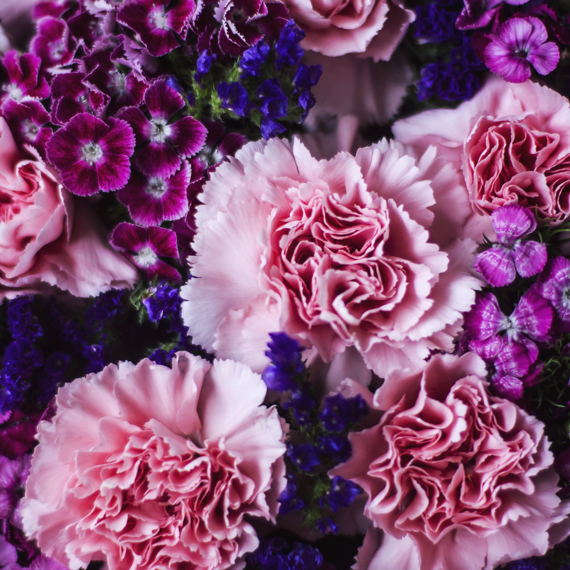 Pink Carnation (18 Stalks), Purple Statice (1 Stalk), Pink Statice (1 Stalk)
