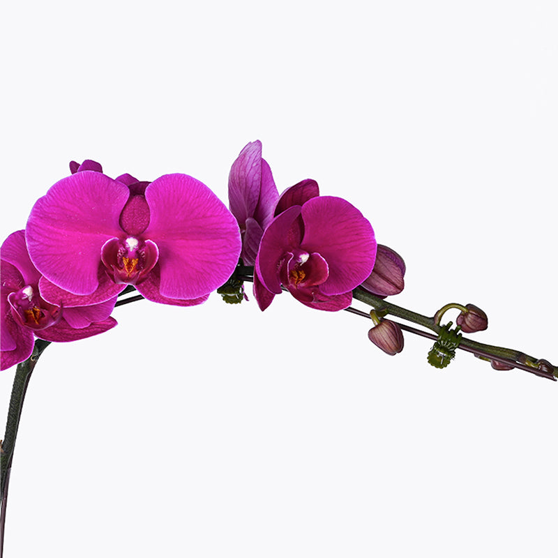 Flourishes of pearly whites, paired together with gleaming pink blooms - our Magenta Melange potted Orchid brings you a medley of royal hues, brought to you in a sophisticated marbled pot.